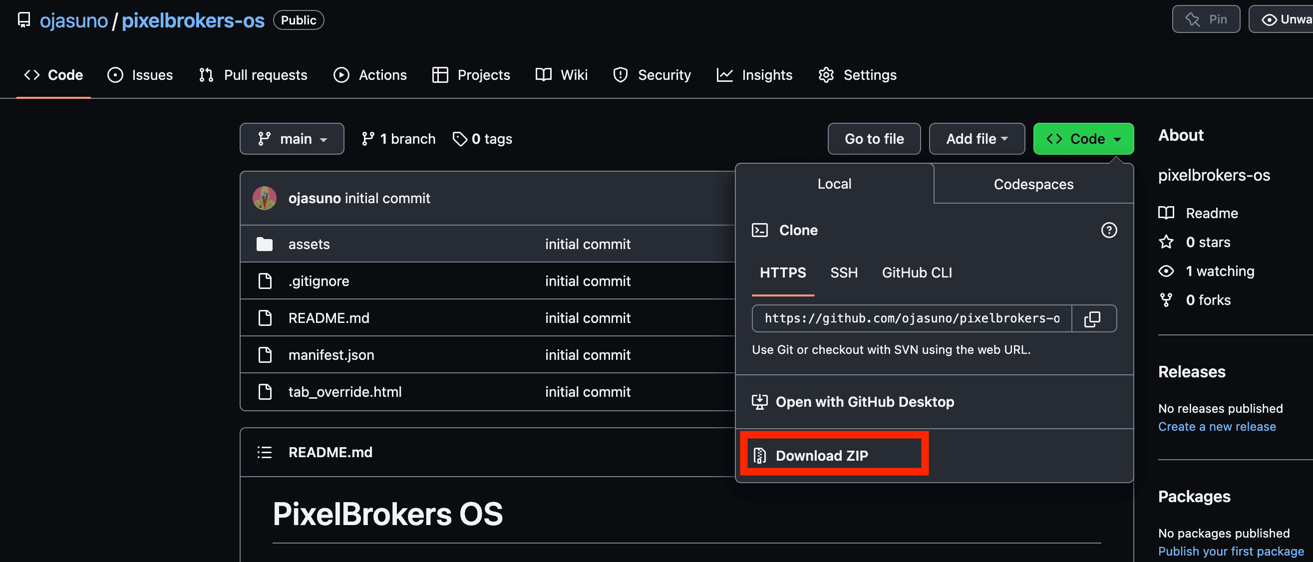 Click the green "Code" button and select "Download ZIP". Save it in a safe spot!