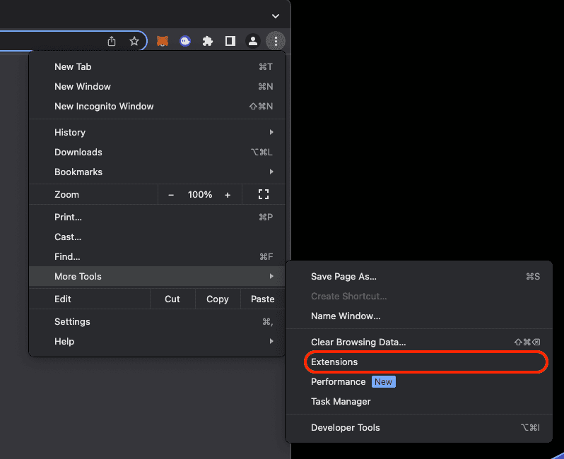 Open your browser and head to the "Extensions" section. This is found in the settings portion of your browser! Checkout the screenshot below: